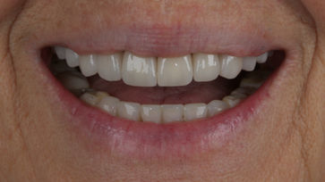 Abaixo o resultado final da reabilitação oral do com cerâmicas odontológicas (porcelanas) realizado no fluxo digital (uso de scanners, softwares de desenhos de dentes, e impressoras 3D) gerando um resultado extremamente agradável e satisfatório pra paciente